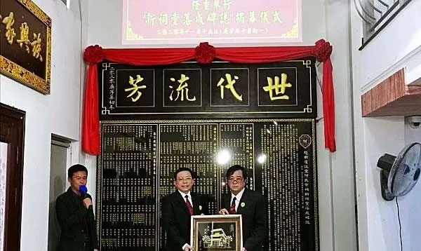 祭祖仪式后举行碑志揭幕仪式,何冠忠、何俊昌、何应锦、何叶珏等宗长为碑志揭幕。当红布揭开之际,全场报以热烈的掌声。