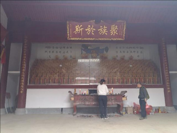 我们走进何氏家庙,恭恭敬敬地手持三支香,向神台上何氏列祖列宗鞠躬致礼!