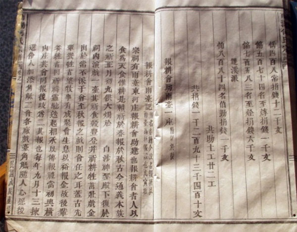 1816年,祠堂重建,一方面按田地户口进行摊派,另方面呼吁各方面捐款。东河有个名义上叫报耕会的组织,捐助雨台一座。事见如谱所载。