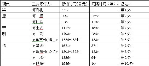 谱者,传信之书。有而失书谓之忽,无而冒书谓之诬。今何氏族谱,自未入舂陵之前,雄图大局,源远流通,固不扳援以骇俗矣,夫岂失于诬哉?及已于舂陵之后,所书无间显晦,无问荣悴,亦不略焉。既非略以失亲,则考必详,又何失于耶(以后虫损无存)