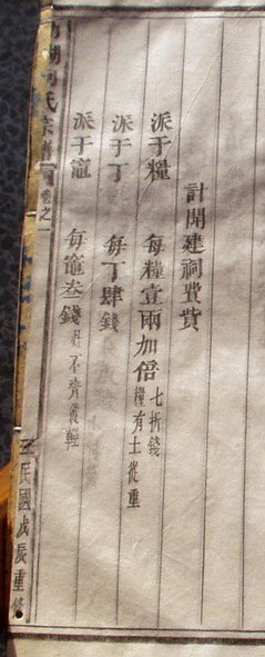 建造大型祠堂,工程复杂,经费巨大,究竟如何筹集呢?谱里有份比较详细记录,我想拿出来研究一番。读者请先看部分谱照。