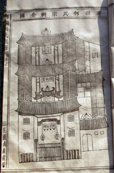 封建社会里,只要宗族稍微有能力,都建筑或大或小的祠堂。它既可用于祭祀,又是群众集体活动的场所。我宗族也不例外,早在16世纪就有了。但鉴于缺乏记载,今己无从查考。19世纪初,族内数千人出钱出力,将何氏宗祠重建。规模扩大了,装修隆重了,全族凝聚力也大为增强。