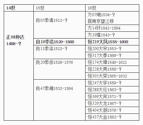 “自久三公第二世分为三枝,今季枝重八公为盛,而在先则叔枝重三公派下最盛”——5世久三公何大受下面再分三枝,现在(1595年)第三枝6世何鸣派(西河东河派)下为盛,而起先是第二枝6世何鸬派(官清派)下比较盛呵。