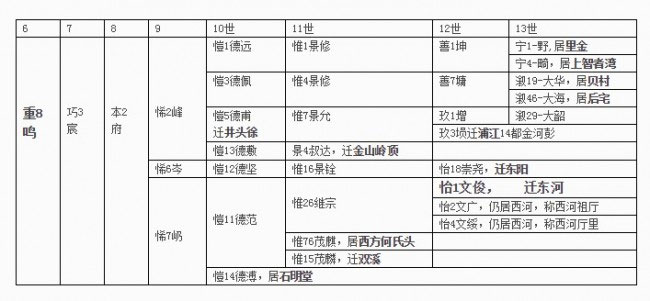 翻阅老谱世系和行传,编排了下面的表格。