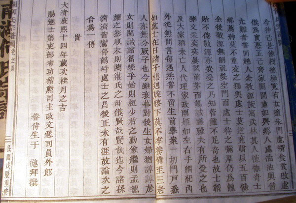看到清朝初期,有钱男人重婚不少。其中有一篇《恬十九何处士既丁大家合传》,是妻子劝丈夫讨小老婆的,而且讨小老婆不是一个,竟是两人!她们还“和谐”地一起生活,今天看来是太奇怪了!这篇合传的作者,竟然是康熙9-14年(1670-1675)担任过义乌知县的于涟写的。义乌县志记载,于乃山东文登人。
