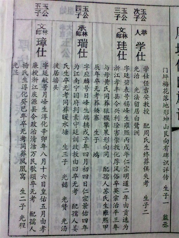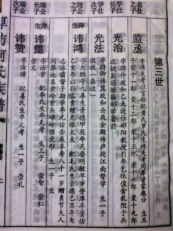 尝思武王周公,继志述事,世称“达孝”。然而宗庙之制必辨昭穆,燕饮之祀必察毛色,此以知尊尊亲亲之谊,虽贵为天子,未有不以之为急急者,况士庶之家?其发祥也,有自其支分也,有别顾可令其涣逸而莫之纪乎?然则家谱之当修而明知也审矣。宗弟德凤、德仪有见于斯,而慨然以修谱为己任。癸巳春予解绶归省,手持一册,向予请曰:“寒舍鳞居鲁塘简藓不一,愧未追随先生,常相亲炙,使少长皆有矜式。因念族谱迟久不修,则代远年湮,支分别派恐难就正,今欲循枝以推其本,临流以遡厥源,俾十世余宗祊(bēng)朗然如纲之在纲,有条不紊。长兄其肯出一言以弁(biàn)诸首,则重增九鼎矣。”予于是重宗谊而乐许与。曰:“九邻流徽,三山并峙,先人之流泽孔长矣,志切。”世德而于亲长之间,重能加意则将来之,恢复前业已昭示来兹者,自可卜之。此日也二弟唯唯而退。予是乎书。