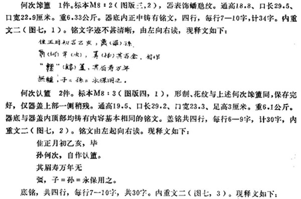 于是循此线索查找《淅川下寺春秋楚墓》,在第9-14页上看到相关资料,但何此作何次,附截图如下: