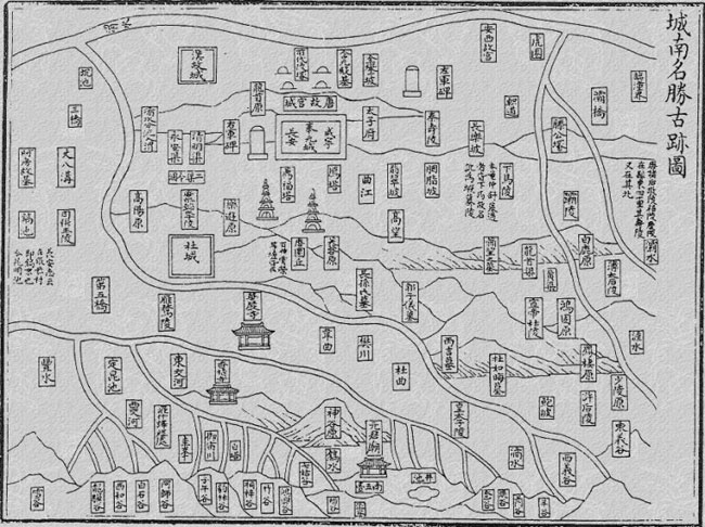 《重过何氏五首》:“云薄翠微寺,天清皇子陂。”皇子陂,在前陕西省西安市长安县南,今属长安区;翠微寺,在今陕西省西安市长安区沣峪镇南浅山上的黄峪填充村。通过这两个地名可以大致直接定位出何将军山林的所在,这比起“不识南塘路,今知第五桥”(《陪郑广文游何将军山林十首》句)更能有效地定位出何将军山林的所在。旁证有《通志》的记载:“少陵原乃樊川之北原,自司马村起至何将军山林而尽。其高三百尺,在杜城之东,韦曲之西,上有浮图亦废,俗呼为塔陂。”少陵原,在今陕西省西安市长安区。旁证还有元代李好文《长安志图·樊川》的记载:“曰塔坡者,以有浮屠故名。在韦曲西,何将军山林也。今其地出美稻,土人谓之塔坡米。”