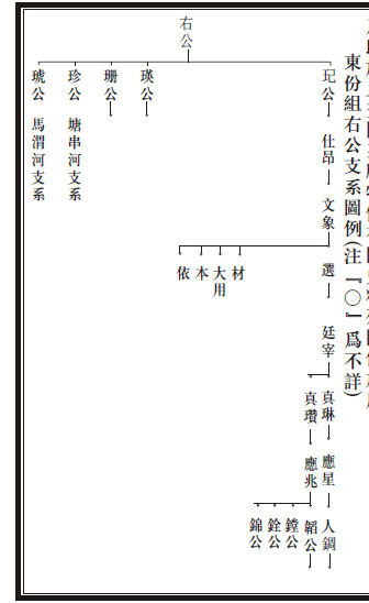 无为关河何氏一脉自始祖卜基立业经五世单传,至天八公方生二子,伯为右,仲为中。右公生五子,玘、瑛、珊、珍、琥;中公生一子,珑。