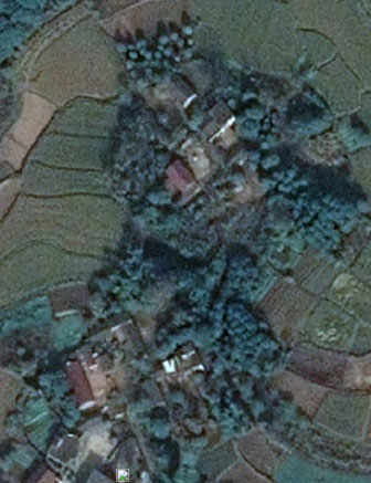 此番五修谱牒,因寻亲方向失误珍公房下未能同修,实为吾族一憾。为了寻亲之愿,我等参照卷十三册末所附祖坟略图,用谷歌地图循塘串河查找地名“孙家嘴”终有所获(上右为孙家嘴截图)。