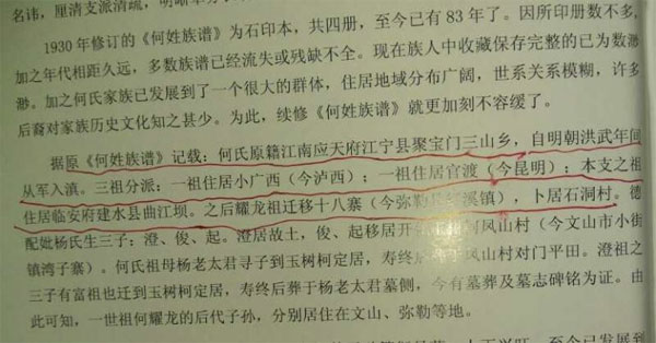在整理我云南燕泉堂何氏支系世系源流过程中收集到贵州桐梓一支宗亲材料和我族两个支系材料有很大相似性,出现多处相同点,特整理出来供大家研究论证: