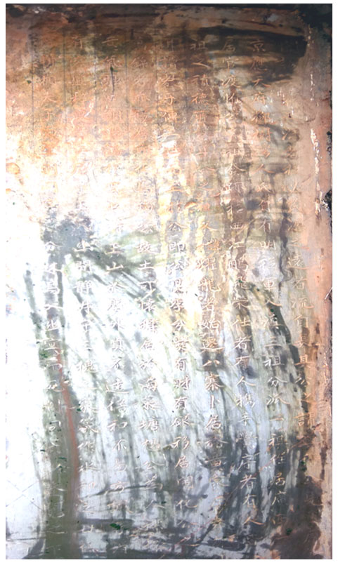 此墓碑为文山、弥勒耀龙祖后裔立于2011年3月28日,据谱中交代是近年才考证确定耀龙祖的墓葬,从文中可以看出耀龙祖祖籍“南京应天府柳树湾人氏”,自“明从军入滇,三祖分派,一祖住居小广西,二祖住居官渡,本支之祖住居临安府(今建水)曲江坝”,耀龙祖迁移十八寨的时间是“康熙壬申年”即清康熙三十一年壬申年(1692年)。同时载明了耀龙祖后裔的分布地点和繁衍代数等人口现状。因是新碑,不做过多论述。