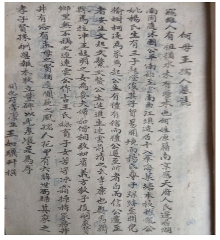 此墓在清嘉庆年间曾经立过墓碑,估计是原碑石与何沛祖、何澄祖、何有富祖等墓碑一样,只有简单的立碑时间和子孙姓名,并没有祖源信息,所以民国四年(1915)文山何氏九世祖何冰清(何砚生)重新为祖母立碑,并请请晚清光绪二十九年(1903)癸卯年春特授开化府教谕沈宗舜撰写碑文。