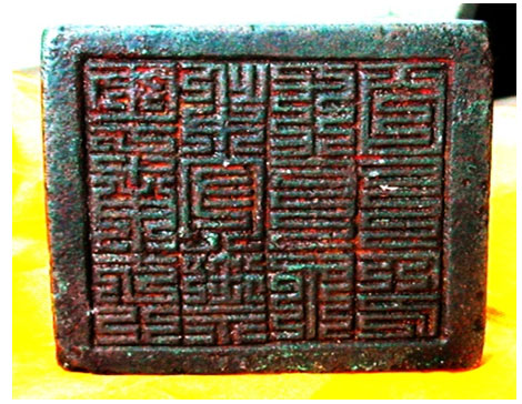 纽底部左上刻铸造颁发部门简称:“礼”。即礼部。
