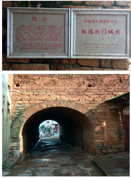 据《云南志》卷七记载:“至元中,弥勒部仍以本部为千户总把,继续领吉输、哀恶、步龙、阿欲四千户”。洪武十四(公元1381年),朱元璋命傅有德为主帅,兰玉、沐英为副帅,率师三十万征云南,讨灭蒙古残元的梁王政权。洪武十六年(1383年)三月,云南征讨成功结束,傅有德、兰玉奉召回京,留沐英镇守云南,军威所及,边隅各部族皆为其统治。然而,沐英不可能分兵把守云南所有的部落,就采取安抚各少数民族部落的政策,仍然由各部落酋长统治各自的部曲。所以,当时的十八寨仍由彝族所据居。十八寨即今弥勒虹溪,古时森林茂密,土地肥沃,水源充沛,是较适宜人类部落居住、生活的绝佳之地,曾是“弥勒部”之一的“阿欲部”先民居住的地方。“阿欲部”先人就经历了明朝时军垦、民屯(tún)的战争。而十八寨,《新建虹溪书院碑记》中亦记载:“去弥勒西南八十里,乃汉律高县地,嗣沦入爨(cuàn)夷鼠穴兔窟,都十八寨”,“东爨乌蛮,结寨十八以自固”。当时的古人部落,多以家族小部落式群居,以便狩猎,驱逐野兽,抵御灾难,后来逐渐发展成为十八个家族式群落,由鬼主(军火主,即总首领)统一协调管理和指挥,名称“十八寨”一直沿用至清光绪年间,皆以“十八寨”称呼,当地人常略“十”字而称“八寨”。这与何有贵墓碑上“公之祖父讳耀龙者始迁八寨,卜居黄家庄……”是吻合的。无独有偶,当时的开化府下属马关县也有一个名叫“八寨”之地,土匪出没无常,被视作匪区,这引起了十八寨地方乡绅的担忧,怕被外人混同,于是由地方绅首清代一品红顶商人王炽等提议清王朝批准,于清光绪十七年(1891年)改名虹溪。“虹溪”之名,源自陈卿的诗作“虹溪春水”。明嘉靖建城之初,当时,四川宜宾的签宪陈卿(签宪,签都御史的美称。明代,都察院设有左右签都御史,所以称为‘签宪’)前来十八寨巡察,被十八寨的秀美山水所折服,便以十八寨的美景为抒情对象,作诗八首,一首诗一美景,被后人称之为“虹溪八景”。其作八诗的诗题分别为:螺峰晚景;虹溪春水;芦渚秋水;山花烟雨;北冈樵唱;南亩农耕;鸡洞仙踪;龙池灵应。而“鸡洞仙踪”就是石洞何源祖墓地,石洞何文道亦称“虹溪八景”为先祖孟春公仿祖居“村头八景”所定,陈签宪是根据孟春公的景名而配之以诗词的。明朝后期,随着时间的推移,“改土归流”政策触及到了彝族领主的权益,矛盾激化,因而形成了长期的动乱。正德四年(1509年)秋,“弥勒州草寇阿十等猖獗”,被总镇沐昂平定;正德七年(1512年)
