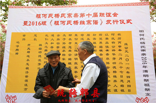 活动现场,组委会向族人发放了新编的2016版《祖何氏杨姓宗谱》。