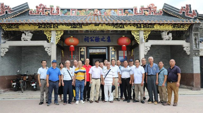 三华村村民徐国赢,带领广州庐江书院文化促进会文史研究员参观“中国同盟会香花分会旧址”,及“黄花岗起义”前,黄兴与“选锋队”队长徐维扬密谈会议室,在“集之徐公祠”(分会旧址)留影。