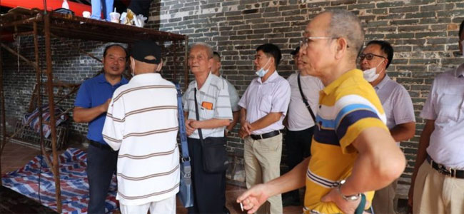 三华村民徐国赢与花都区文史专家胡力平,华南理工大学古建筑专家李哲扬博士,东莞市文史专家何焕坚,广州庐江书院文化促进会荣誉会长何伯平、文史部长何永健、总会顾问番禺沙湾长老何孔,花都分会何德铭会长研讨“水仙古庙”的历史文化。