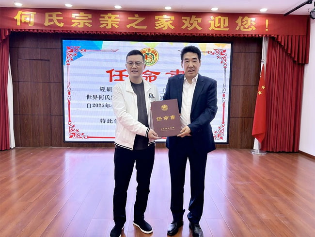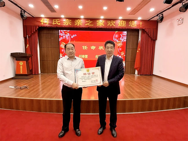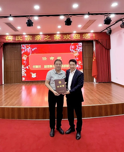 期间,世何总常务副总会长、安徽省世何总文化发展有限公司董事长何金富为新任命的宗长颁发了任职证书,并合影留念。现场气氛热烈、融洽,体现了宗亲团结的良好风貌。