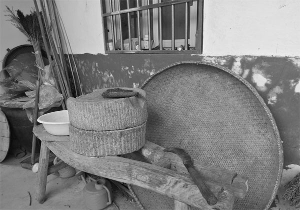 橼条、椽子、隼卯、飞檐等等,也不过平常之物。但不管它怎样的平凡,都是这里的先人劳动创造,是鲜活的历史,是祖先留给今人的财富,它们饱含了先人的思想与情感。站在这里,我也好像是在与这里的先人对话,倾听他们述说非凡的人生过往,他们扶植的一草一木。他们踏平的每条小路,以及他们在村口送别远行的儿孙。屋檐下的石磨,我熟悉不过,我曾推着故乡的石磨打豆腐、磨米粉,用着碓臼、砻子、油榨、烟榨,跟着舅舅做烟筒。我相信,这里也曾是这样。