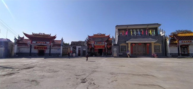 我们从广角视角可见一字排开三个祠堂。在这三个之后还有第四个祠堂叫做登贤坊。