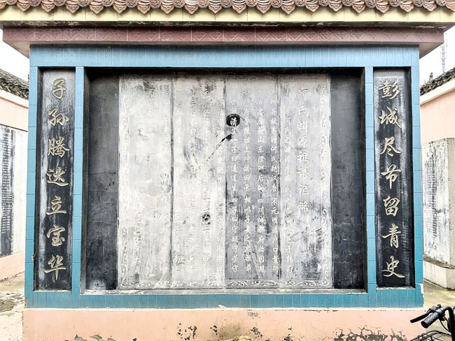 在杞县邢口镇孟庄村,调研组对何渊泉源流世系展开调研。何渊泉为明万历年间进士,官至光禄卿、大理寺少卿,著有《圣谟畧节》等多部作品。其墓志铭至今尚存。