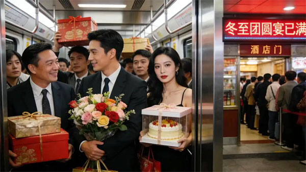 冬至虽非法定假日,在广东却往往“约定俗成”地提前下班。电梯里挤满手提礼盒的同僚,相视一笑,心照不宣。地铁车厢内,西装青年怀抱鲜花,妆容精致的女子护着蛋糕盒,人人朝向同一方向——家的方向。酒家门口排起长队,电子屏滚动提示“冬至团圆宴已满”。这不是法定假日,却是岭南人以脚步投票选出的、不容置疑的归期。