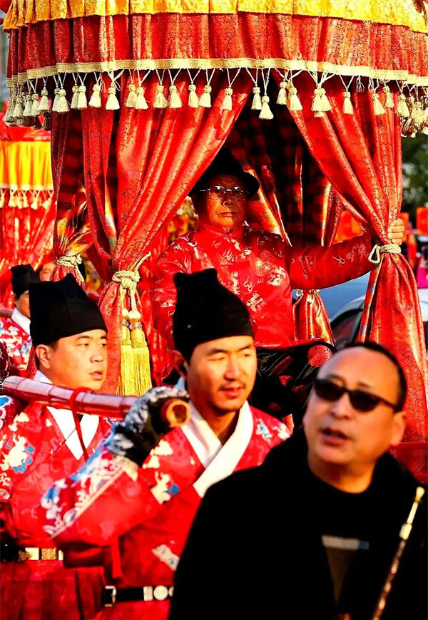 聚德堂何氏后裔们身着华美盛装,随着欢快的节奏,在村庄与商业街之间穿梭,进行了一场盛大的踩街巡游。他们沿街表演,为当地民众奉献了一场精彩纷呈的民间传统节目盛宴,其中包括舞龙舞狮的生动表演、走秀的优雅身姿、广场舞的欢快节奏,以及抬猪羊祭的庄重仪式。踩街巡游活动通过传统节目和表演,增进了村民之间的感情,也为祭祖大典营造了浓厚氛围。