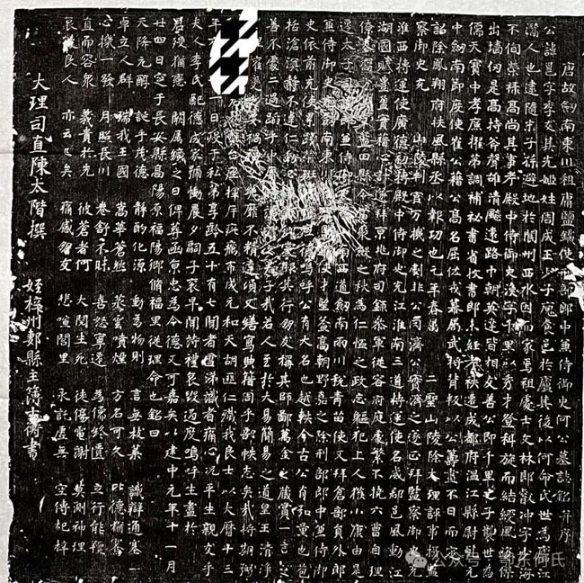呜呼!公有大名也!越轶今古,公有弘量也!苞栝沧溟,静不违仁,动必□□,乡党服其行,朋友称其师。鄙万金之藏,赏一言之善,不处二过,蹈乎中庸,时议谓之君子哉若人。至于大易简易之道,皇王清净之理,搉变之要,祸福之几,靡不精达,涢又缮写典籍,周乎部帙志矣哉。捋期弼谐,□□□□,君□台座,挥厈疵疠,
