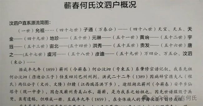 以上三种记载,使蕲春何氏汶泗支源流顿添疑问,不知孰真孰假。