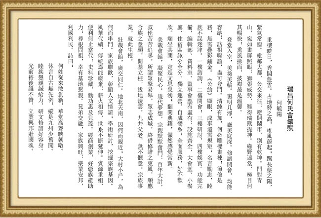 为庆祝江西瑞昌何氏会馆大厦落成,何毓阳宗亲启赋词一篇。