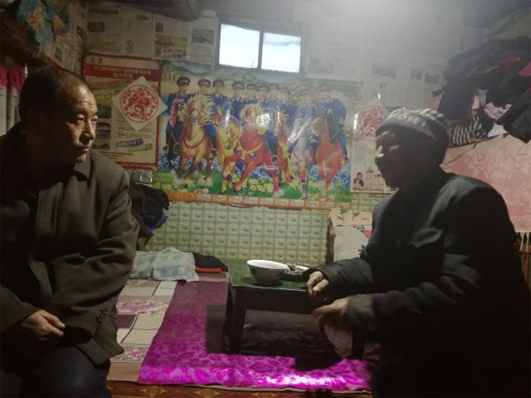 由于时间紧,天色已晚,慰问团起身驱车赶赴永康镇丰台村,经过询问打听找到了77岁何世吉、71岁何世发家中,在昏暗的夜幕下,老人家还在羊圈里操心着儿子的羊只,在狭窄的羊房中老人热情地忙个不停,口中总在说“想不到啊,真是没想到”!感激之情溢于言表!