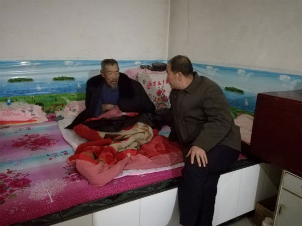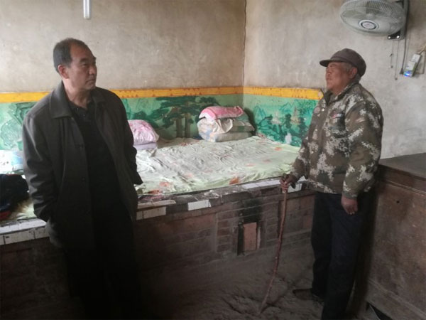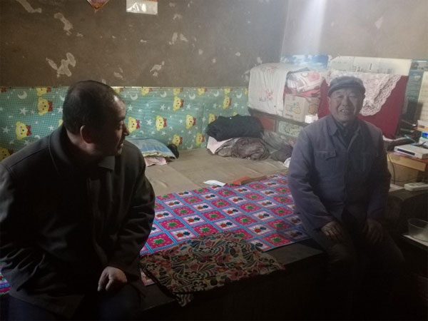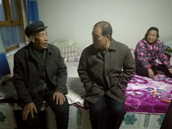 慰问团一行披星戴月来到了景台村上点,看望慰问了70岁的何风珍老哥,随后又走进了何风强家看望慰问了我的三爹何世荣,他今年78岁高龄,在家带着孙子享福了,两个儿子都在外地工作,家中只有老两口和孙子,女儿女婿时常到家中关照。