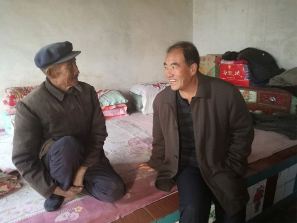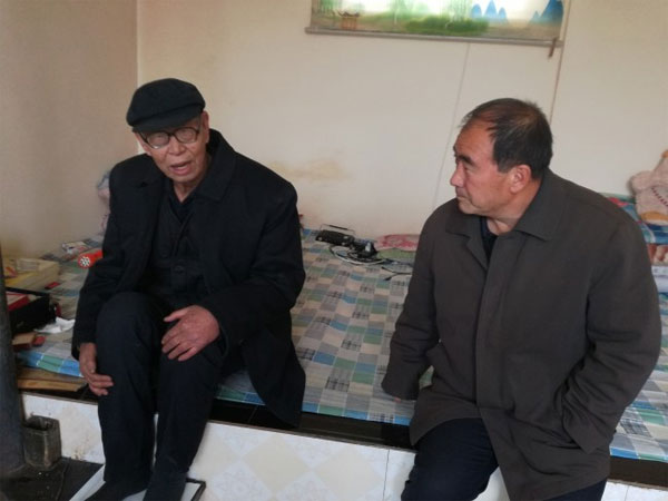 在畅谈中时间飞速而过,侄儿媳妇下好了长面,我们吃了中午饭,直奔石门何家庄。看望慰问了71岁的景淑兰婶婶和双目失明的何世忠小爹,今年66岁的他,虽然眼睛看不见了,但心中却是明亮明亮的,讲起家族历史历历在目。老人家双目失明是一级残疾,收到党和政府的重视,据说开春后就要搬迁到中卫市区宜居廉租房居住了。我们为他能健康安度晚年而庆幸!