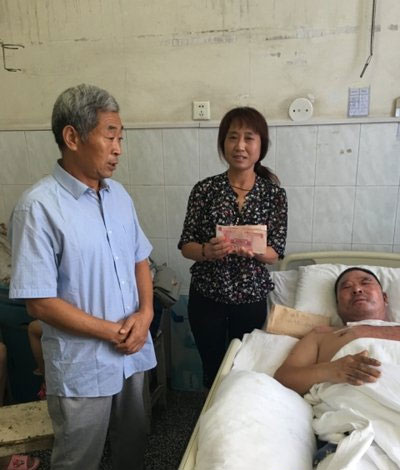 2017年8月13日,何姓委员会鹤壁会会长何振业带领宗亲来到医院,看望被烧伤的病人何国立。