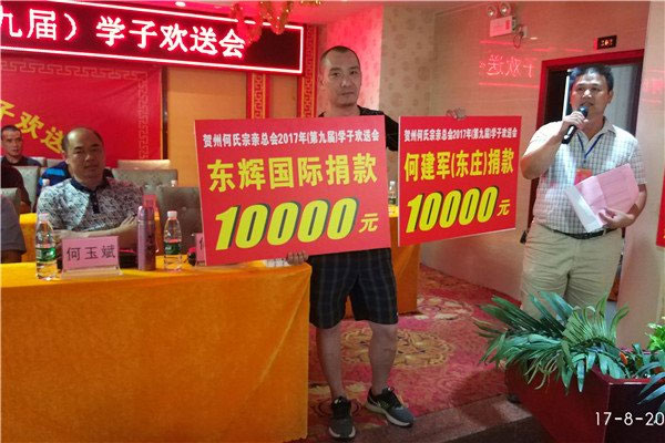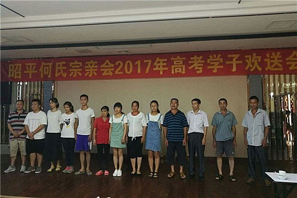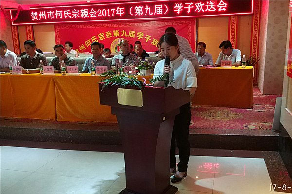 今年的欢送会上,有45名今年高考被录取的何氏优秀学子获得奖学金。贺州何氏宗亲总会总会长何祥高、富川宗亲会会长何堂枧在欢送会上勉励何氏学子们学好知识本领,将来报效祖国。