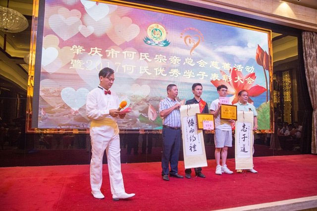 广东省肇庆市今年有80多名何氏学子考取大学一本,其中何本华为今年肇庆市文科“状元”。消息传来,肇庆何氏宗亲的宗长们异常兴奋。8月26日,肇庆何氏宗亲、慈善会举行“肇庆何氏宗亲慈善活动暨2017何氏优秀学子表彰大会”,500多名宗亲代表和企业家参加。