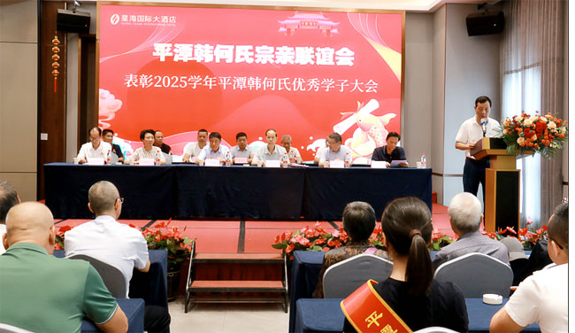 2025年8月16日上午,平潭韩何联谊会在平潭星海国际大酒店隆重举行“2025学年优秀学子表彰大会”,共120余位宗亲、优秀学子及家长齐聚一堂,共同见证这一光榮时刻。