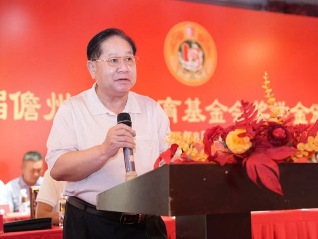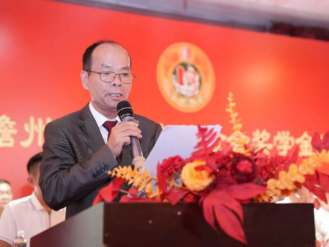 会长何启义在会上发表讲话,他勉励获奖学子再接再厉,在高校勇攀知识和科技高峰,学成后报效家国。