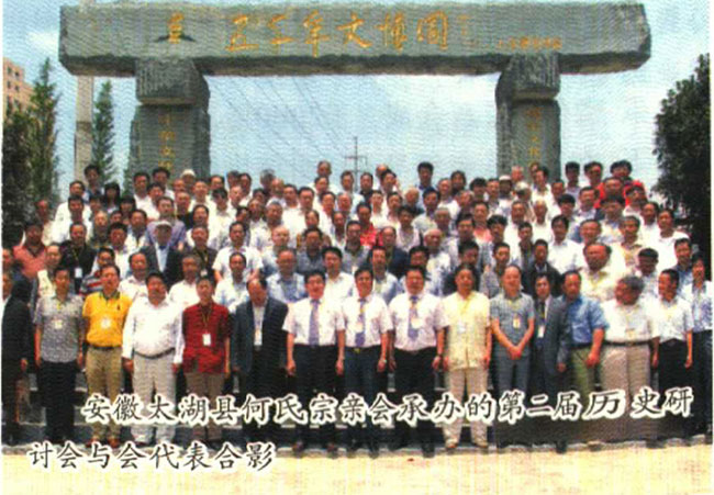 随着安徽工作的逐步推进,在世何会的充分信任下,在当地宗亲会的积极配合下,分別于2000在庐江县成功承办了“第七届世界何氏宗亲恳亲大会”,2012年、2013年、2017年分別在太湖县、潜山县、怀宁县承办了第二届、第三届、第六届“中华何氏源流研讨会暨通讯员会议”,2013年在庐江县承办了“第五届企业家峰会”。这几次大型会议都得到了世总会及与会者的一致好评,也使全世界各地的何氏族人更深地了解了安徽。近几年来,在何道深总会长的领导下,在当地政府的大力支持及世界各地宗亲们的无私奉献下,坐落在庐江何氏陵园的世界何氏根亲文化馆建设已完成,逐步完善的 何氏图片展示、历史资料陈列等,更加形象地体现 了丰富多彩的何氏文化,展现了何氏名流及突出贡 献者的风采。